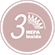 採用H13等級的HEPA濾網,可捕捉0.3微米的汙染物和空氣微粒,強效濾淨 PM2.5,以及塵蟎、寵物毛屑、花粉…等過敏原,且捕捉效率高達99.9%。