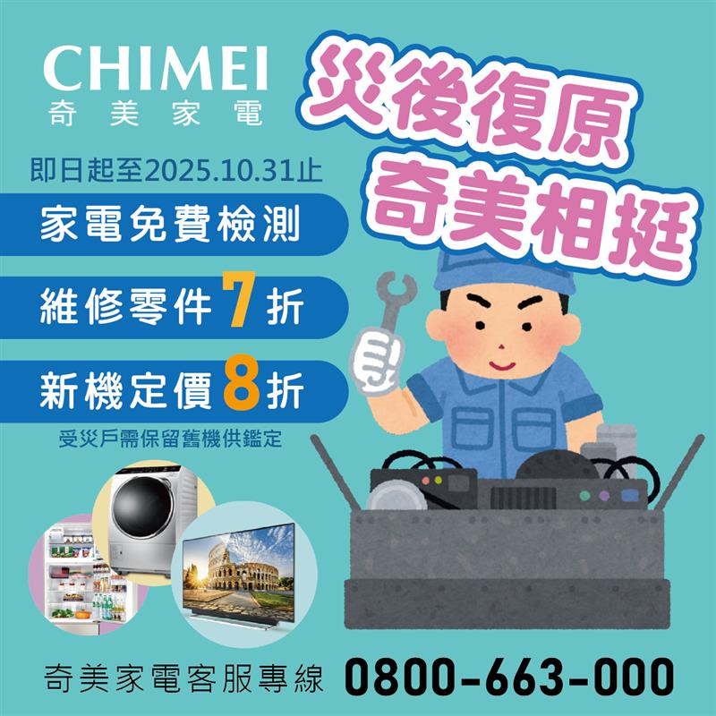 CHIMEI奇美家電提供風災戶免費家電檢測